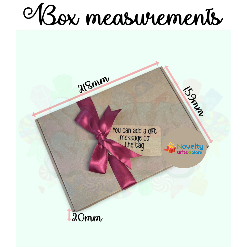 This Valentine’s chocolate gift box for your wife is a fun and thoughtful way to show your love with a unique twist. Designed with novelty chocolate bar wrappers, this charming gift adds a playful and personal touch, making it perfect for Valentine’s Day, Easter, birthdays or any special occasion. Inside the box, you’ll find a delicious selection of popular chocolate bars and biscuits, offering a variety of flavours and textures to enjoy. From smooth chocolate to crunchy treats, this gift box is ideal for sharing or indulging in a sweet moment together. The gift can also be personalised with a message, making it even more special for your loved one. Finished with a decorative ribbon, it is ready to gift and can be sent directly to the recipient for added convenience. Perfect for Valentine’s Day, Easter, anniversaries or simply as a thoughtful surprise, this chocolate gift box is a delightful way to make someone feel appreciated.