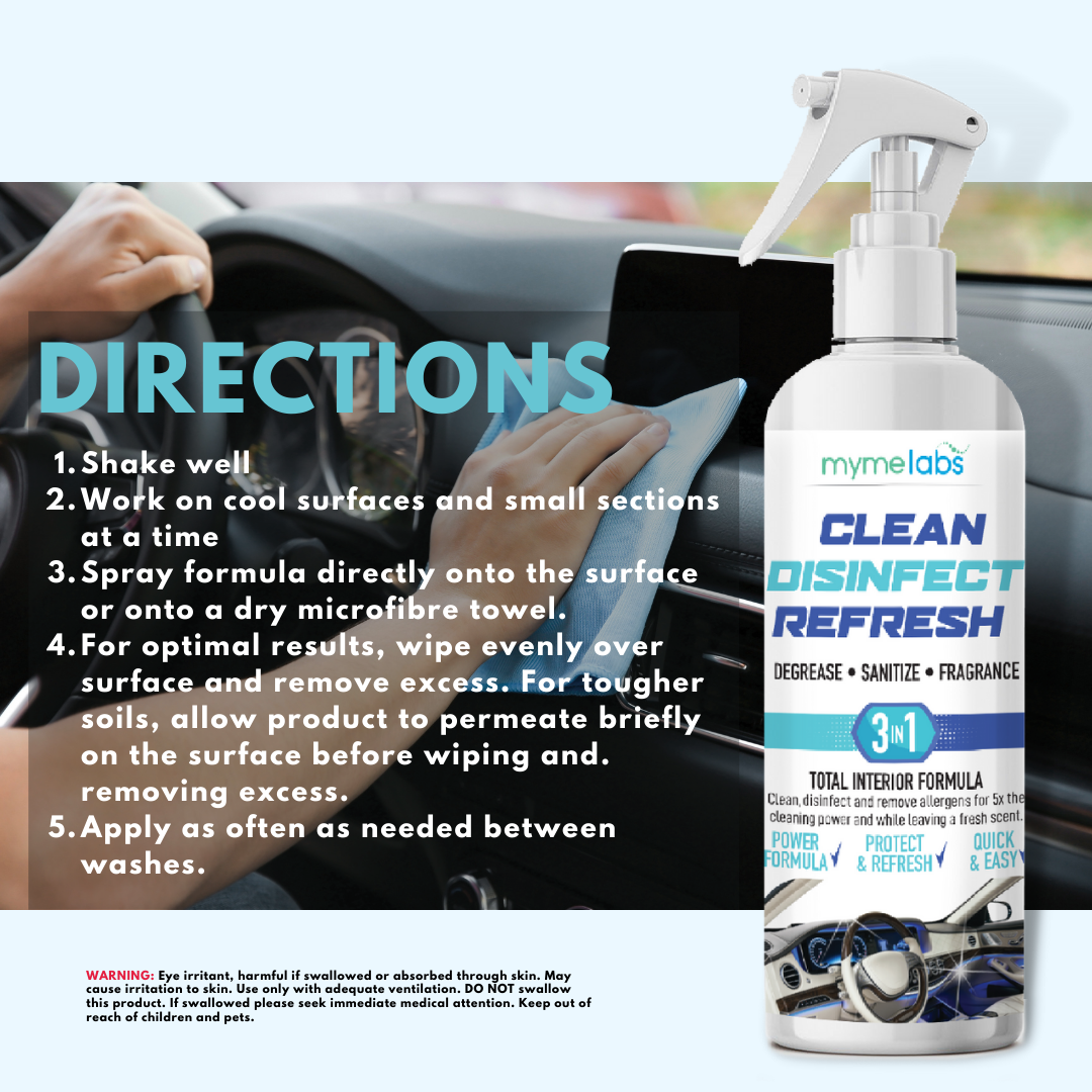 This powerful formula allows you to clean and detail your entire vehicle's interior. Disinfect frequently touched areas, use to remove dust and enjoy the fresh scent.