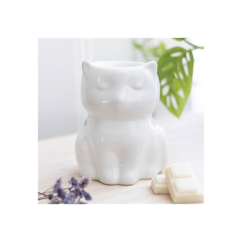 This charming white cat oil burner, a perfect gift for cat enthusiasts. When not in use, this item also looks fantastic as an ornament in the home. Recommended for use with fragrance oil diluted with water.