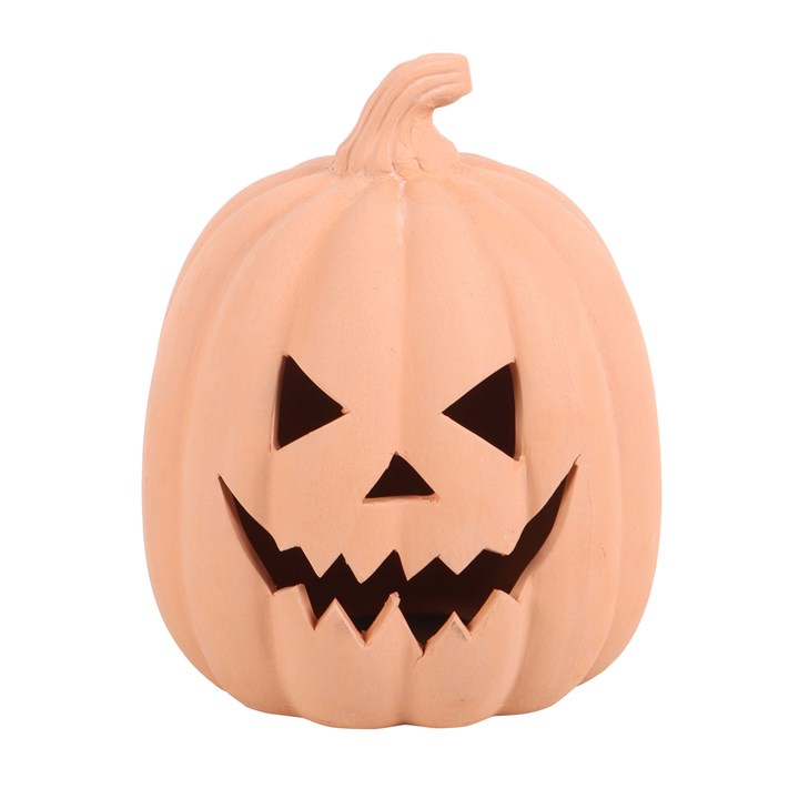 This 15cm terracotta jack-o-lantern is the perfect addition to any Halloween decor, both indoor and out! With space for a tealight candle, this menacing pumpkin will add a spooky glow to any room, patio or outdoor area.