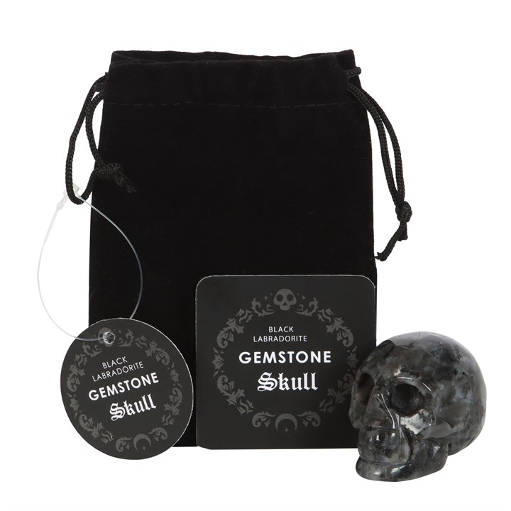 This crystal skull is made from black labradorite which is a stone renowned for its ability for grounding, bringing abundance and offering protection. The skull is the perfect size for holding in the palm of your hand then you need a little support or reassurance. This unique piece serves as a stylish desk accessory, always within arm's reach for those moments of need. Presented in a black drawstring pouch for keeping the skull safe whilst on the go.