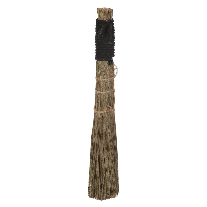 This besom broom, also called an altar brush, is a traditional tool used for both practical and spiritual purposes. Whether brushing away dust from within the home or cleansing an altar space, this small broom will sweep away all unwanted dirt and negative energies. Bound with jute string and finished with a metal pentagram charm.