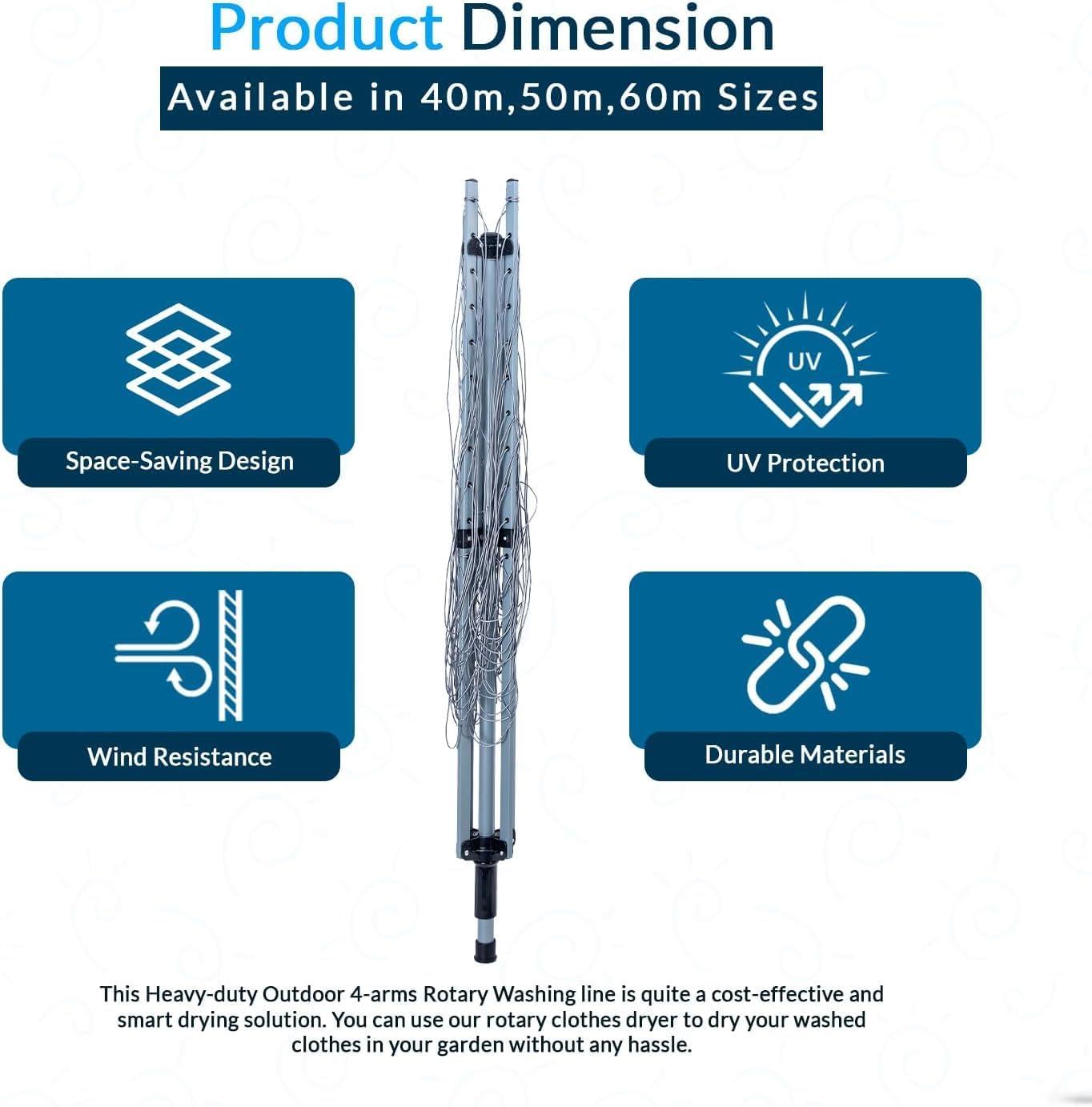 The powder-coated finish ensures long-lasting protection against the elements, making this rotary airer suitable for year-round use. The included weatherproof cover keeps the line clean when not in use, and the foldable structure allows easy assembly, use, and storage.