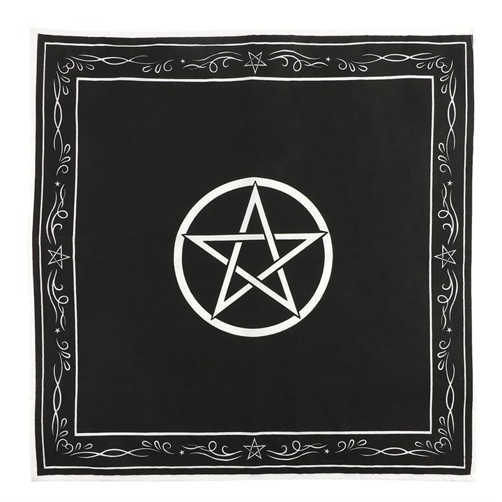 Decorate a sacred space with this black cotton altar cloth featuring a white pentagram design. The pentagram is a symbol found throughout many cultures and religions around the world and is widely believed to represent the five elements; earth, fire, water, air and spirit. Product Dimensions: H70cm x W70cm x D0.1cm Packaged Dimensions: H30cm x W27.5cm x D0.1cm