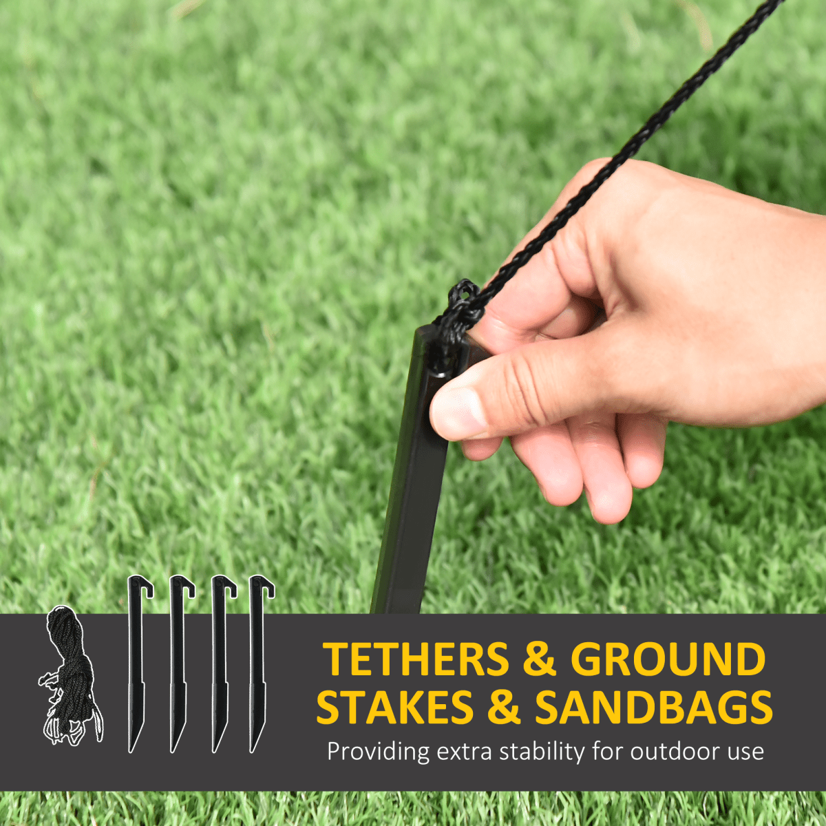 - Includes 4 ground stakes, 2 guy ropes, and 2 sandbags for secure installation
