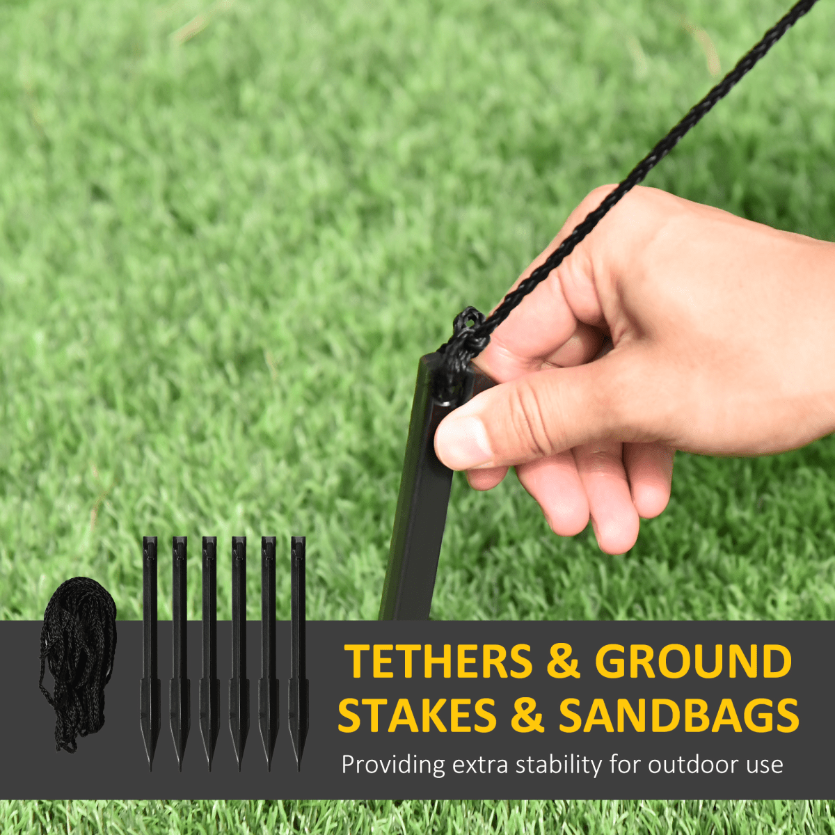To ensure it stays firmly in place, the set includes six ground stakes, three guy ropes, and two sandbags for extra stability — ideal for breezy winter days.