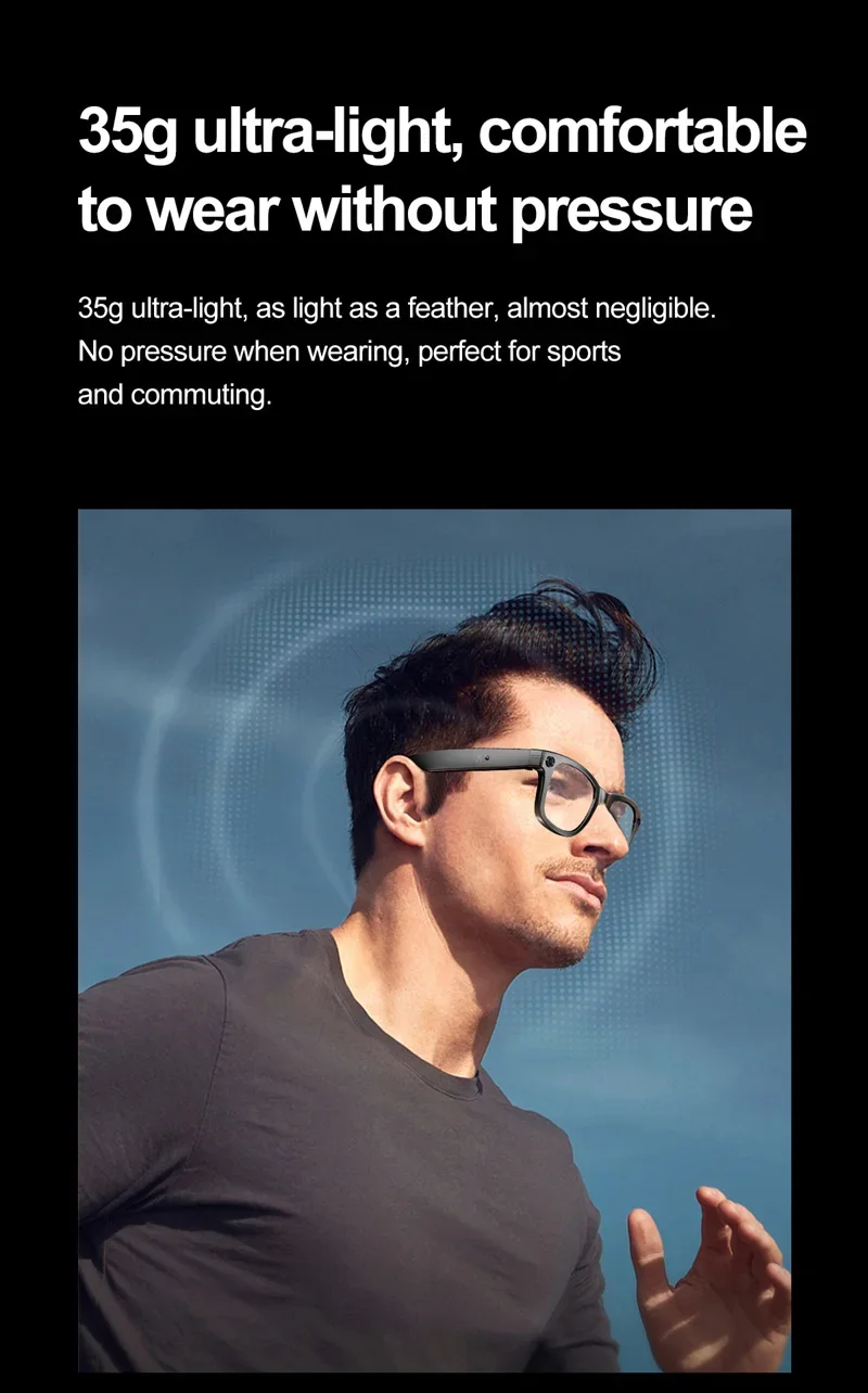 Featuring AI-powered image recognition and voice interaction through a companion app, these smart glasses enhance how you capture and interact with the world around you. Lightweight at just 35g, they provide comfortable all-day wear, while the IP65-rated dust and water resistance ensures durability for daily use.
