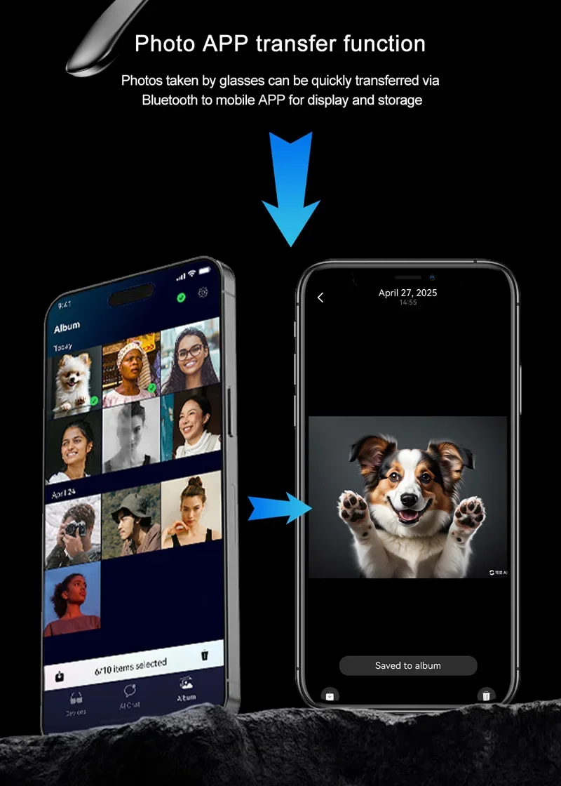 Experience next-generation wearable technology with these AI smart glasses, combining style, intelligence and everyday functionality. Designed for seamless integration with Android and iOS devices, they allow you to take photos, record videos, answer calls and enjoy music directly from your glasses.