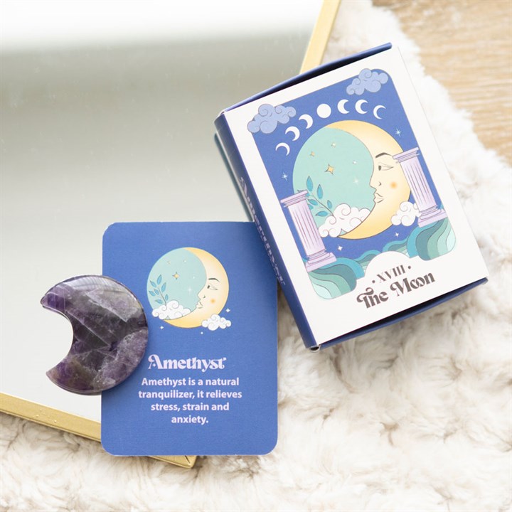 Amethyst Crystal Moon Keepsake Stone in a Box