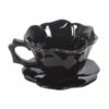 Summon timeless elegance with this black ceramic teacup and matching saucer, sculpted in the likeness of a dark, blooming rose. With its shadowy silhouette and delicate petal detailing, this piece adds a touch of gothic grace to every tea ritual. 250ml capacity.