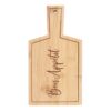 Durable and eco-friendly, this 100% bamboo serving board features the wording ‘Bon Appetit’. A great piece for serving up delicious bites to eat at dinner parties and get togethers with friends and family. Food safe. Hand wash only. Do not soak. Product Dimensions: H26.5cm x W14cm x D1.35cm Packaged Dimensions: H26.5cm x W14cm x D1.35