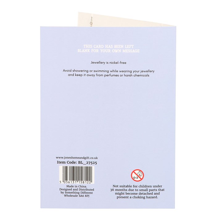This sweet, silver-toned butterfly necklace comes nestled on a matching greeting card, making it the perfect gift to show love, support and positivity. Nickel-free stainless steel. Includes envelope. Card left blank inside.