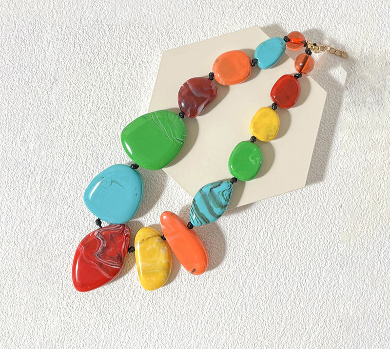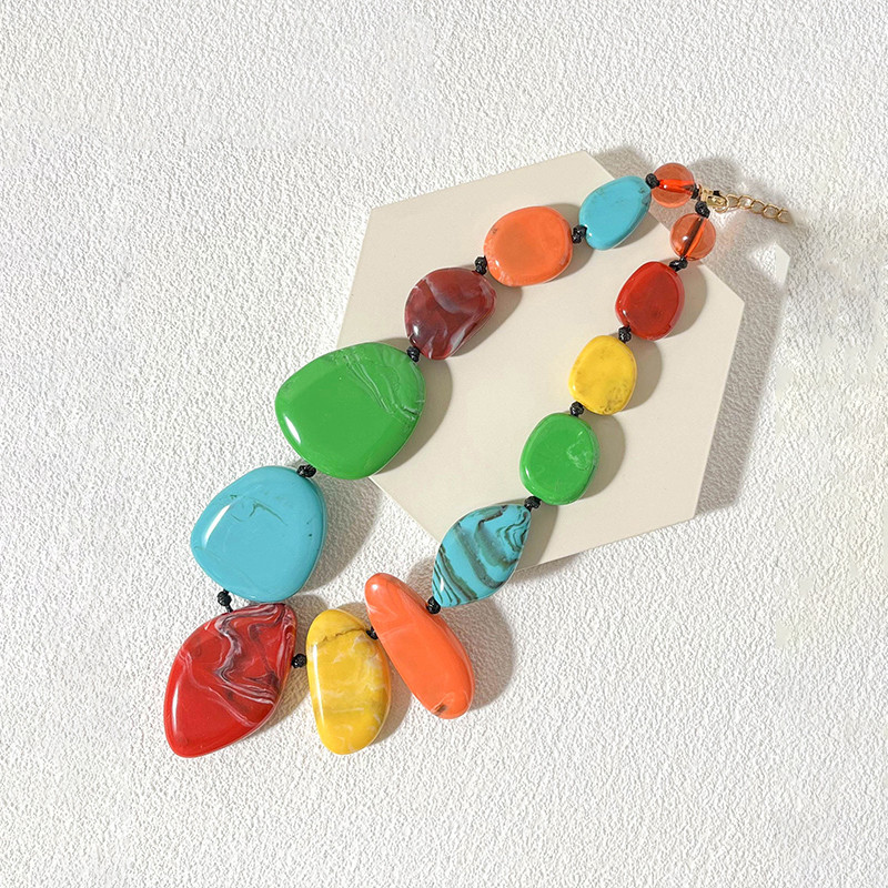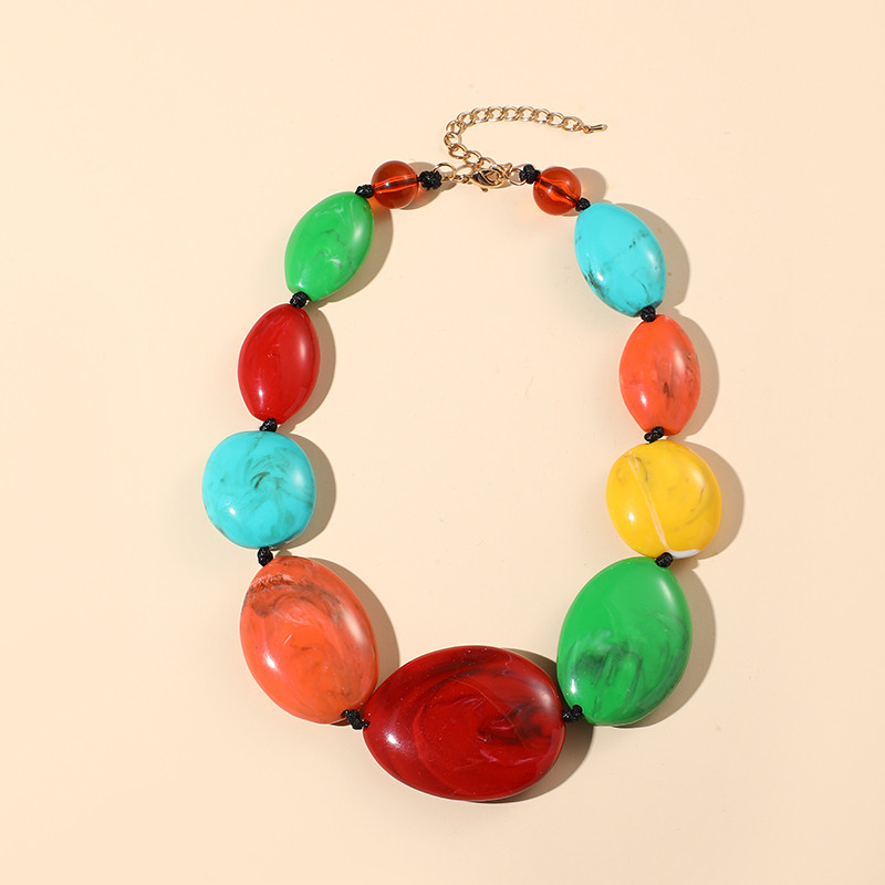 New Colorful Chain Big Necklaces for Women Multi Color Punk Beaded Necklaces for Girl Summer Travel Choker Jewellery Vintage Gifts