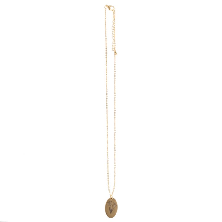 This lovely greeting card features a timeless wildflower design and holds a gold-tone necklace adorned with the recipient’s birth flower, making it a thoughtful surprise for birthdays, Mother’s Day, milestone moments and more. Symbolising hope, wealth and clarity, the narcissus flower is a meaningful token for those born in the month of December. Includes engraved flower charm on a 22cm nickel-free chain. Card left blank inside. Envelope included.