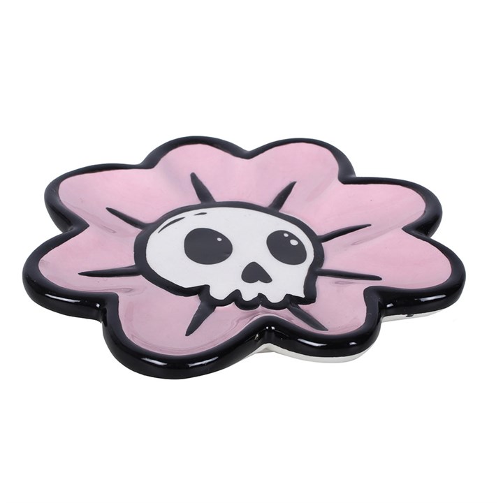Cute, creepy AND practical. This flower-shaped trinket dish with skull centre is the perfect piece for keeping rings, earrings and tiny treasures safe, while adding a little attitude to your dressing table.
