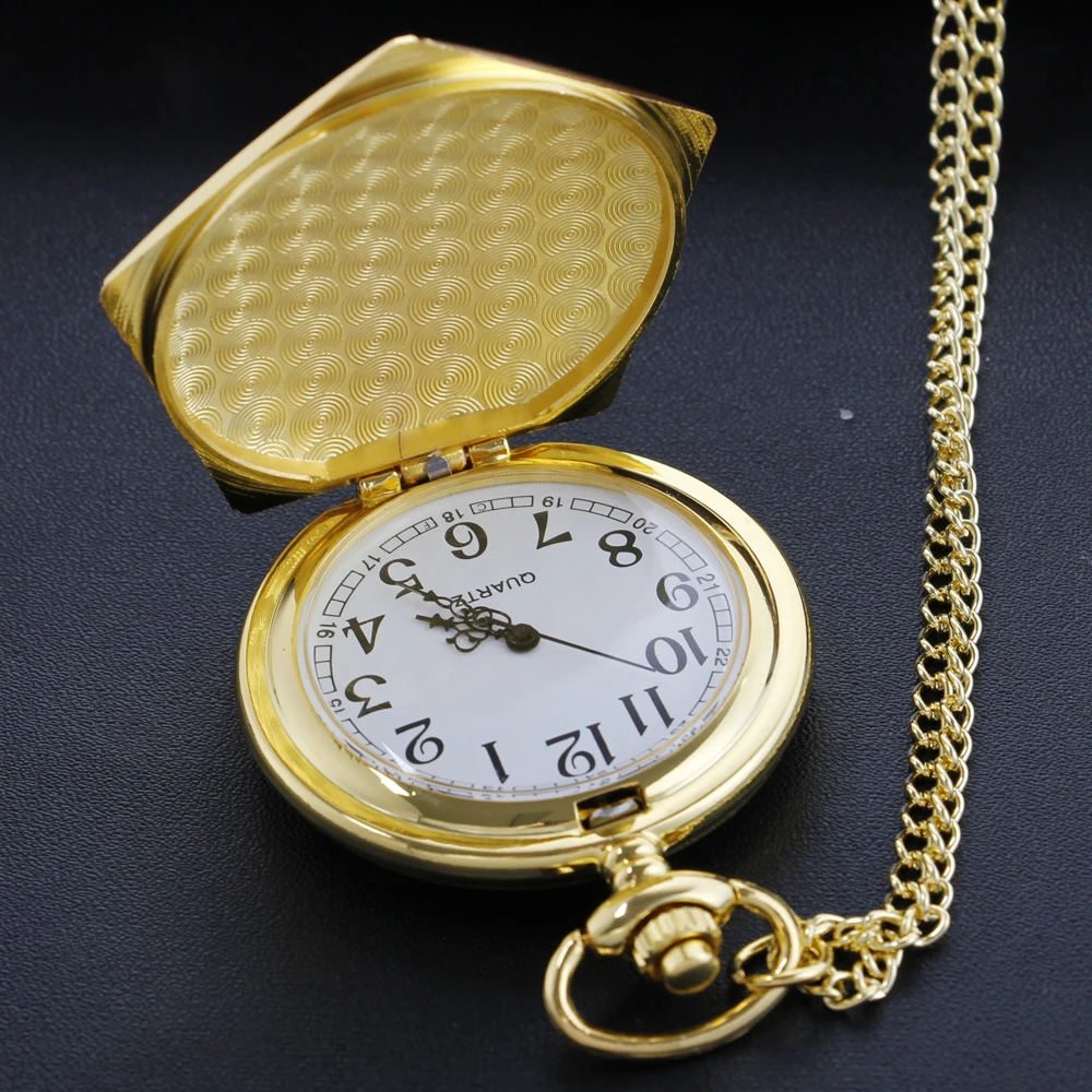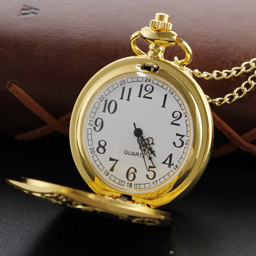 Gold Quartz Steampunk Pocket Watch Necklace with Chain – Vintage Pendant Gift