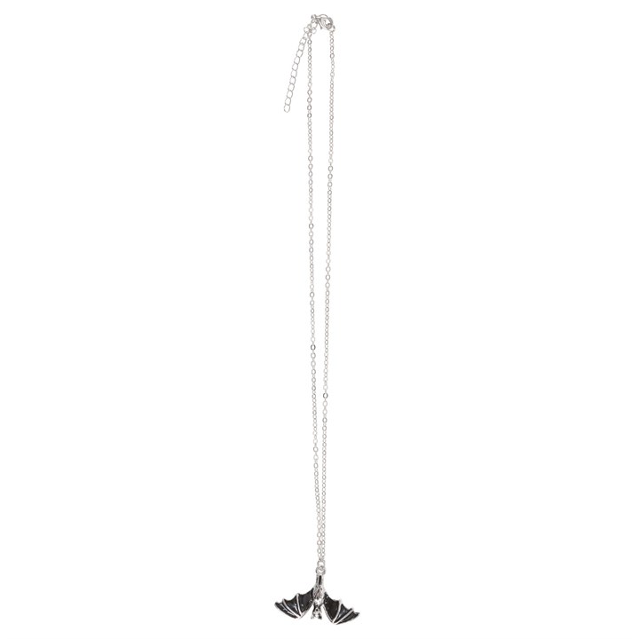 This fun necklace features a dangling stainless steel bat and is a unique piece to add to any jewellery collection. Perfect for adding an edgy flair to your look. The intricately designed bat dangles from a stainless steel chained necklace. Presented on a matching backing card.