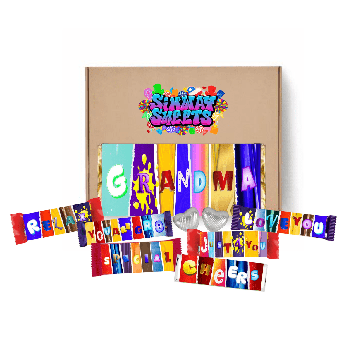 This Mother’s Day, a chocolate gift box for Grandma is a fun and thoughtful way to show your love with a sweet and unique twist. Designed with novelty chocolate bar wrappers, this gift adds a playful and personalised touch, making it perfect for Mother’s Day, Easter, birthdays or any special occasion.