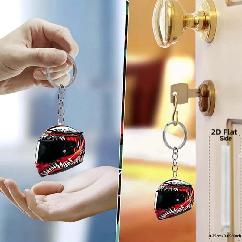This stylish Motorcycle Helmet Keychain is a perfect accessory for bikers, motorsport fans, and anyone who loves unique key rings. Designed in a flat 2D helmet style, it adds personality to your keys, bags, backpacks, or car accessories. Lightweight, durable, and eye-catching, it makes a great everyday accessory or a thoughtful gift for friends and family.