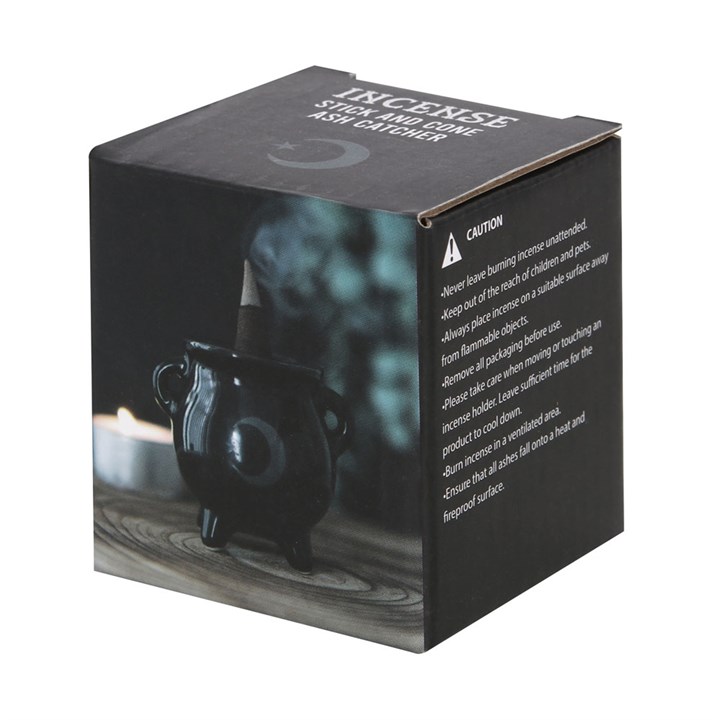 Whether used with incense sticks or cones, this ceramic cauldron incense holder makes a quirky home fragrance gift for any witch. A printed moon symbol finishes off this unique design.Product Dimensions: H6cm x W6.8cm x D5.5cm Packaged Dimensions: H7cm x W6cm x D6cm
