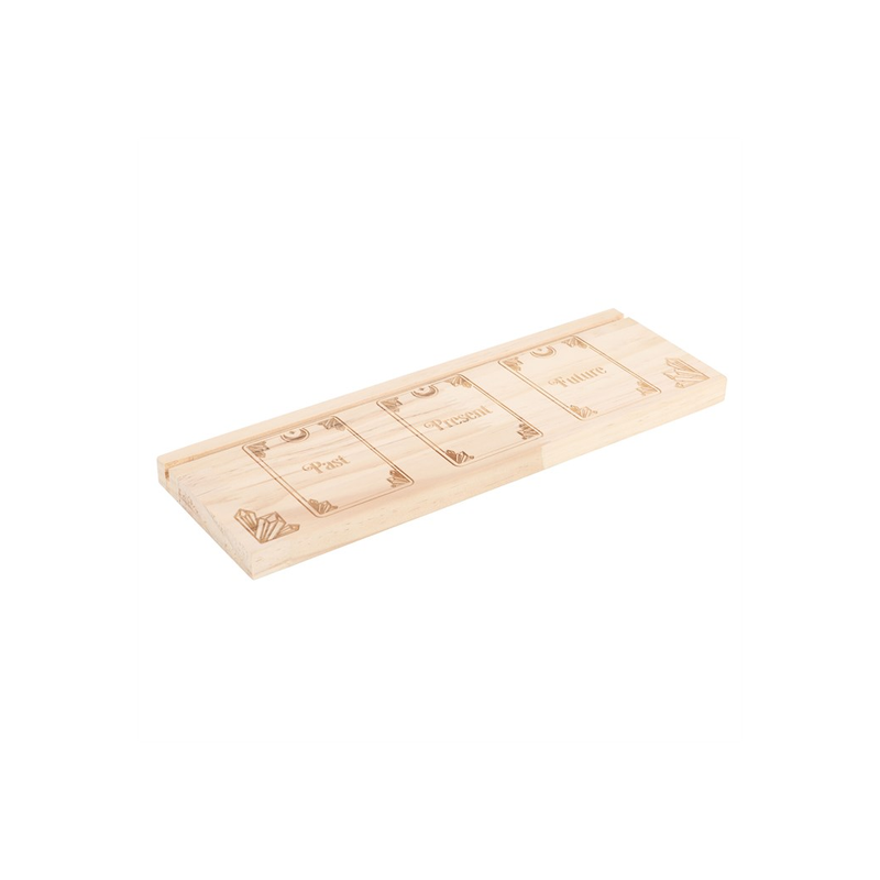Display tarot card readings with this wooden tarot card stand, complete with a past, present and future design, allowing the meaning of the cards to fully resonate. Whether it’s used for displaying treasured tarot cards for their meaning or their unique design, this piece will add mystical allure to any home.