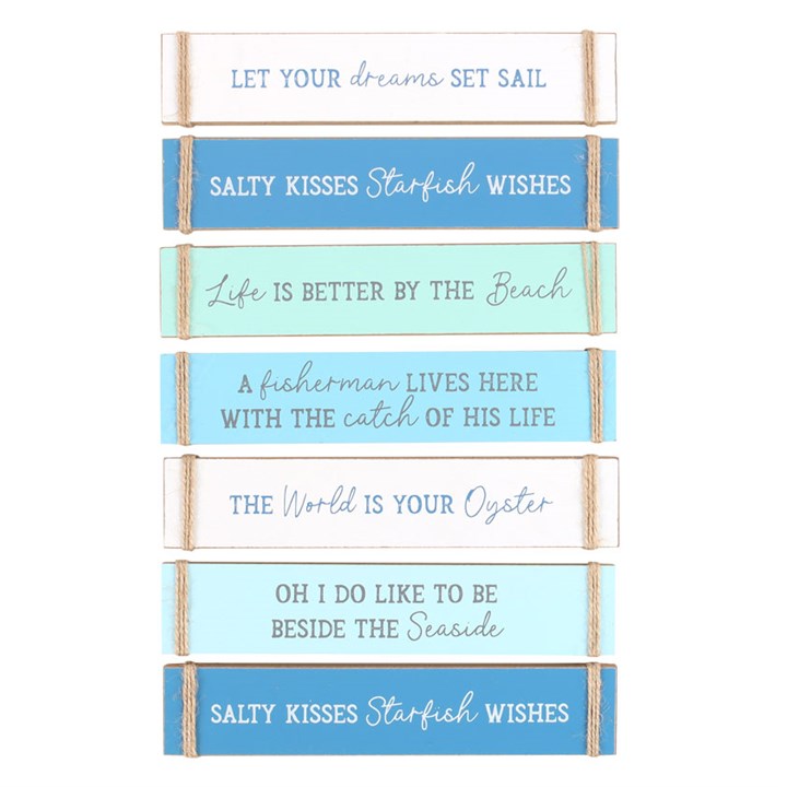 This pack of 6 signs have been inspired by life by the sea and feature sweet phrases like ‘The World is Your Oyster’ and ‘Salty Kisses and Starfish Wishes’. Designed in muted seascape inspired colours, these decorative signs are perfect for adding some nautical accents to the home. In this pack you’ll recieve 1pc of 6 different design variations.