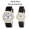 Ravel Gents Gilt Day/Date Faux Leather Strap Watch + Ravel Ladies Gilt Day/Date Faux Leather Strap Watch