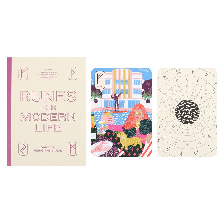 The Runes for Modern Life divination card deck by Theresa Cheung includes a 24-card deck and and informational guidebook. This deck uses ancient wisdom to solve 21st-century problems. With themes such as prosperity, strength, protection and transformation, every card is a valuable tool for guidance through difficult situations. Beautifully presented in a sliding box and illustrated by Camilla Perkins.