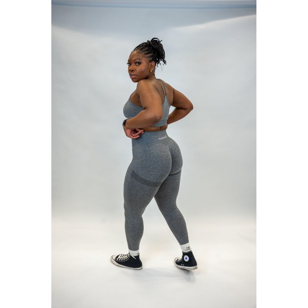 - Set Includes: Scrunched sports bra + high-waisted seamless leggings