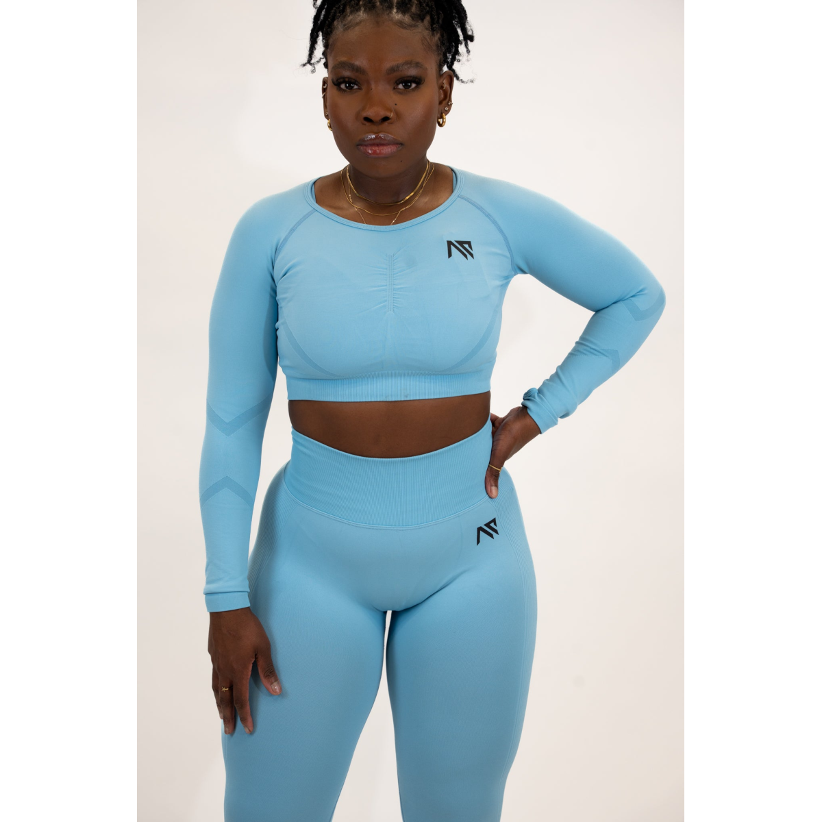 Scrunched Seamless Activewear Set – Baby Blue (Leggings & Crop Top)