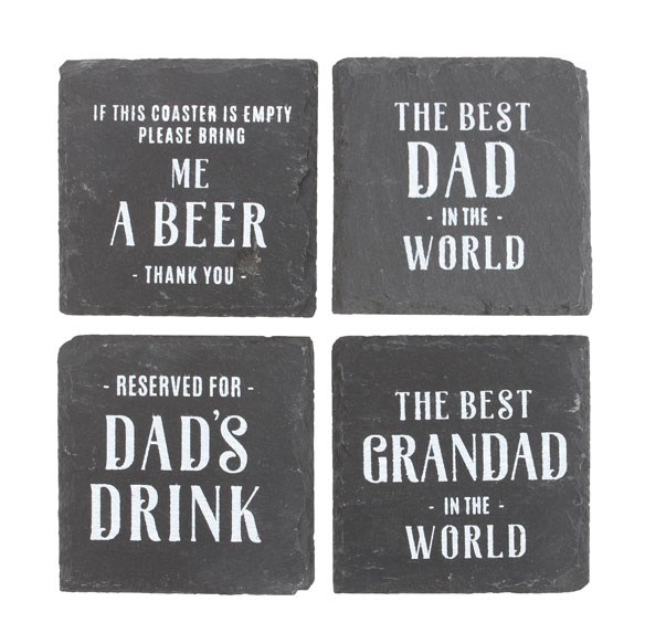 Add a touch of humour and appreciation to his daily routine with these slate coasters, perfect for Father’s Day. Each one carries a message that’s both cheeky and endearing, from a playful beer request to a tribute to his status as the best dad or grandad. These coasters protect his surfaces while showing him how much he’s valued every day. Sold as a set of 24 coasters in a matching cardboard display.