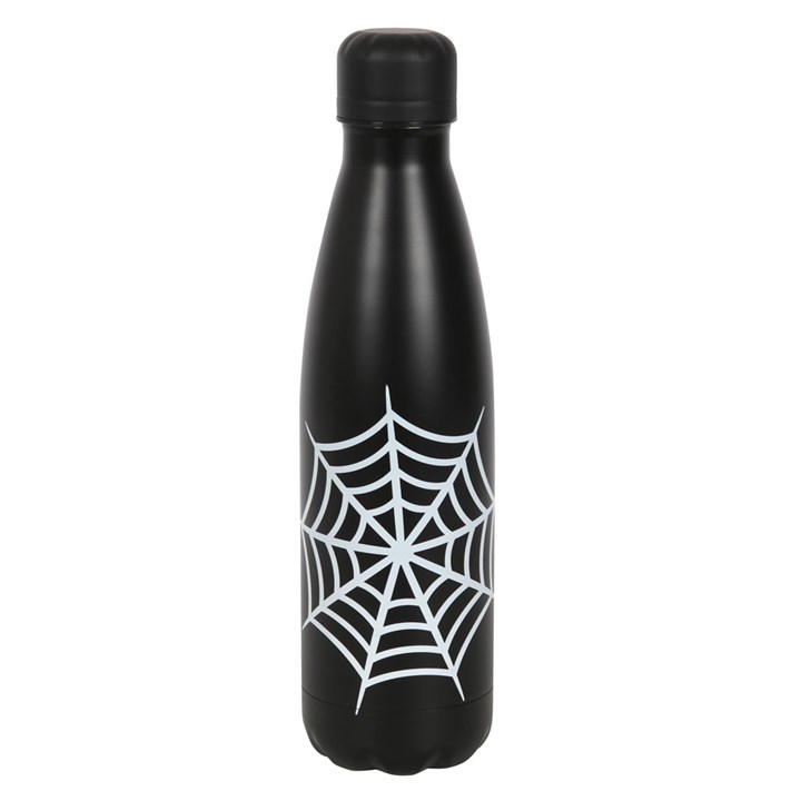This black metal water bottle makes a great eco-friendly replacement for plastic and features a cool spiderweb design. This item features a convenient screw-top lid to prevent accidental spills. 500ml capacity. Hand wash only. Do not microwave. Suitable for hot or cold beverages. BPA free. Product Dimensions: H26.5cm x W6cm x D6cm Packaged Dimensions: H27cm x W7cm x D7cm