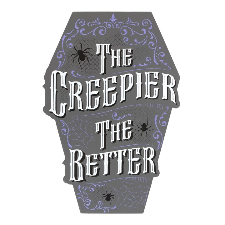 Offering a nod to the darker side of decor, this muted grey sign conjurs images of a fog-shrouded graveyard, adding a mysterious allure to any setting. Featuring the wording ‘The Creepier the Better’ this sign is a statement piece for lovers of all things eerie and unusual.