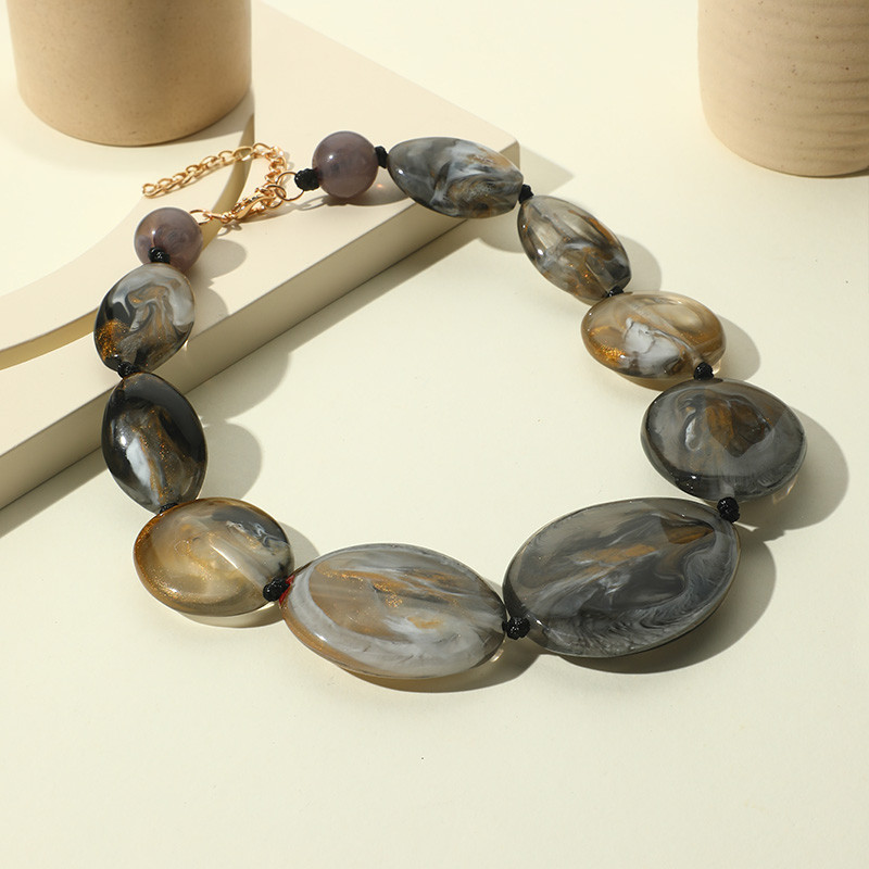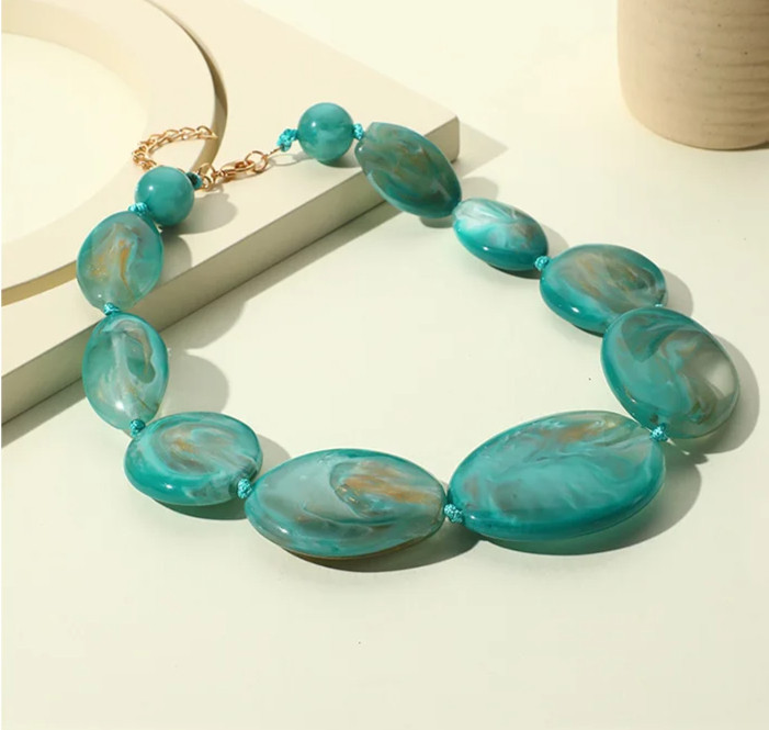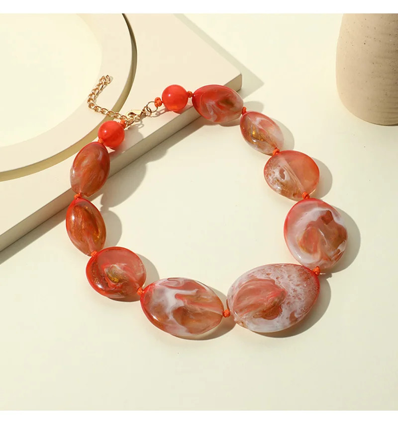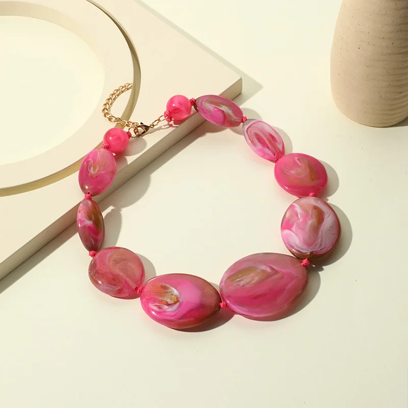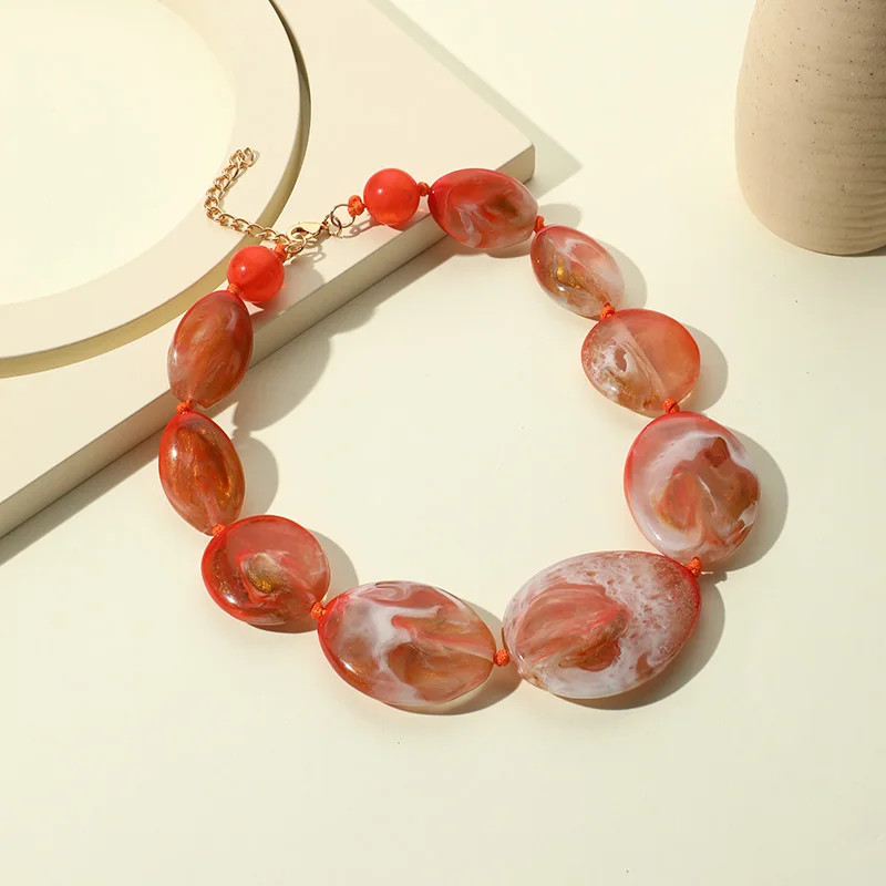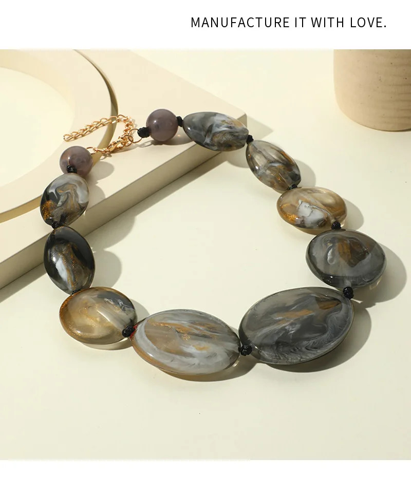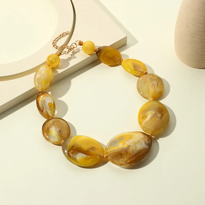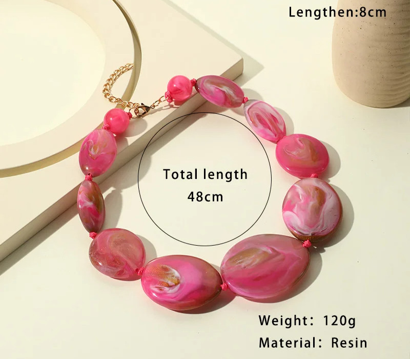 Vintage Resin Big Beads Necklaces for Women Bohemian Patterns Beaded Chain Choker Necklace Fashion Jewellery Charm Gifts