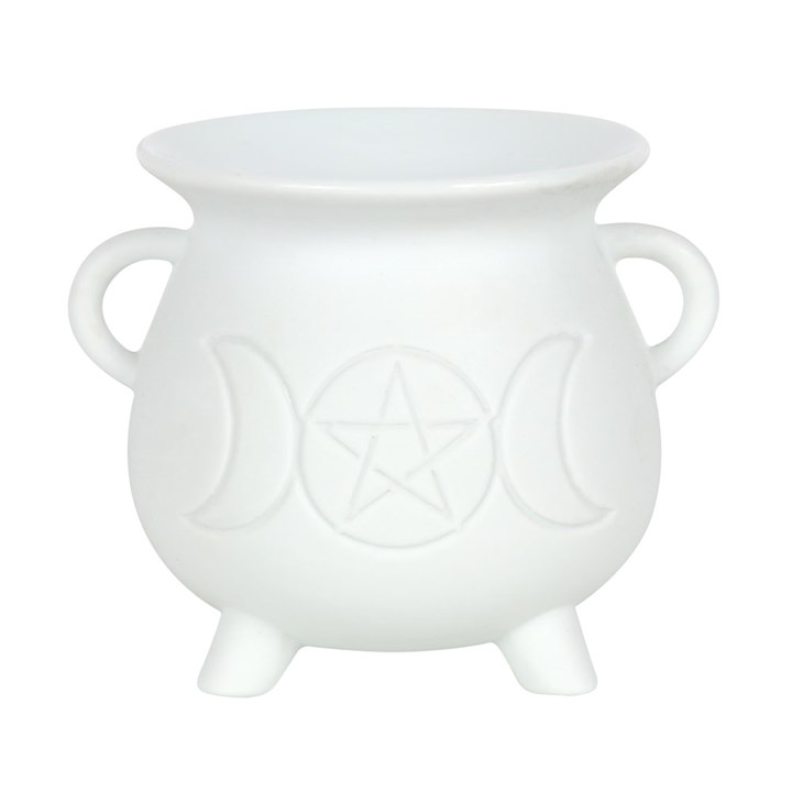 This white cauldron burner features an engraved triple moon on the side and can be used to warm wax melts or diluted fragrance oils to beautifully fragrance your space. Product Dimensions: H10cm x W13cm x D10.5cm Packaged Dimensions: H12.5cm x W15.5cm x D13cm