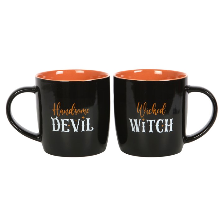 Bold and spooky, this pair of whimsical mugs features ‘Wicked Witch’ and ‘Handsome Devil’ text that’s perfect for any offbeat couple. 500ml capacity each. Microwave and dishwasher safe.